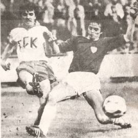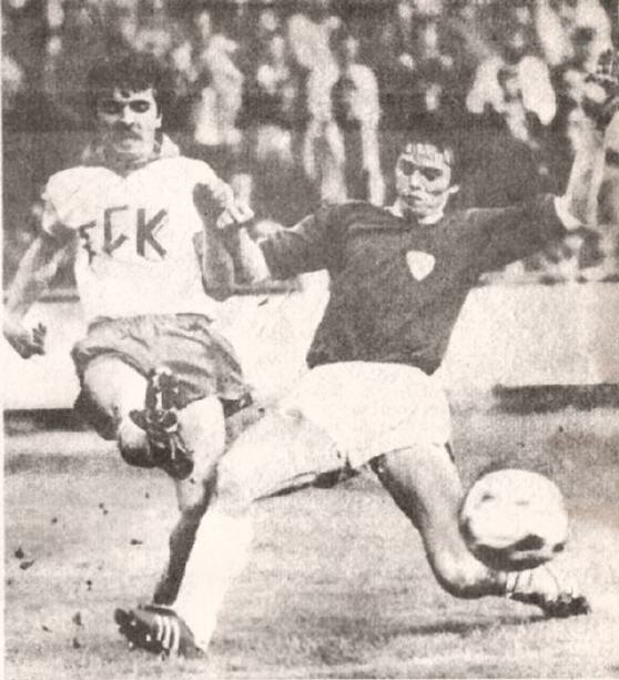 Stefan Persigehl 1982 in einem Heimspiel gegen den Schacht. Zu dem er 1990 selbst für eine Saison wechselte und zur Strafe gleich abstieg! In seinen zehn Jahren (1980 - 1990) beim FCK schoss er in 200 Spielen 57 Tore und erreichte mit dem Club 1983 und 1989 das FDGB Pokalfinale.