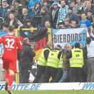 Das Vater/Sohn Gespann nahm auf den Sitzrängen platz und bemerkte bald fragwürdige Gesellschaft. Eine Reihe vor Ihnen ein Westberliner…TeBe Fan. Um es kurz zu machen: Ein arroganter Idiot, der bereits vor Spielbeginn in überheblichen Sprüchen nichts Gutes an den neuen Bundesländern ließ. Unmut machte sich breit. Es fehlte nicht mehr viel!
