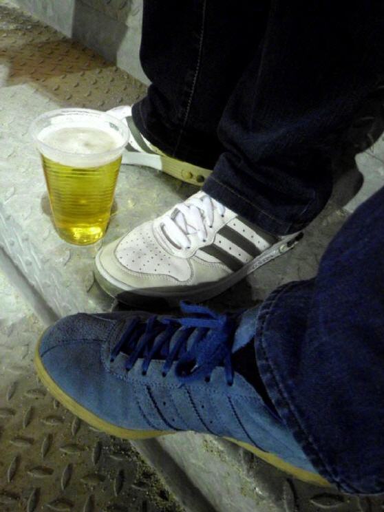 Poch, poch… klopfte es an der Tür und einige Kerle in unserem Alter suchten noch paar Plätze. Die Typen mussten schon länger zum Fußball gefahren sein, da erstmal alles was nicht niet- und nagelfest war, per Luftfracht aus dem Fenster befördert wurde und man sich im Nichtraucherabteil erst mal gemütlich eine ansteckte.