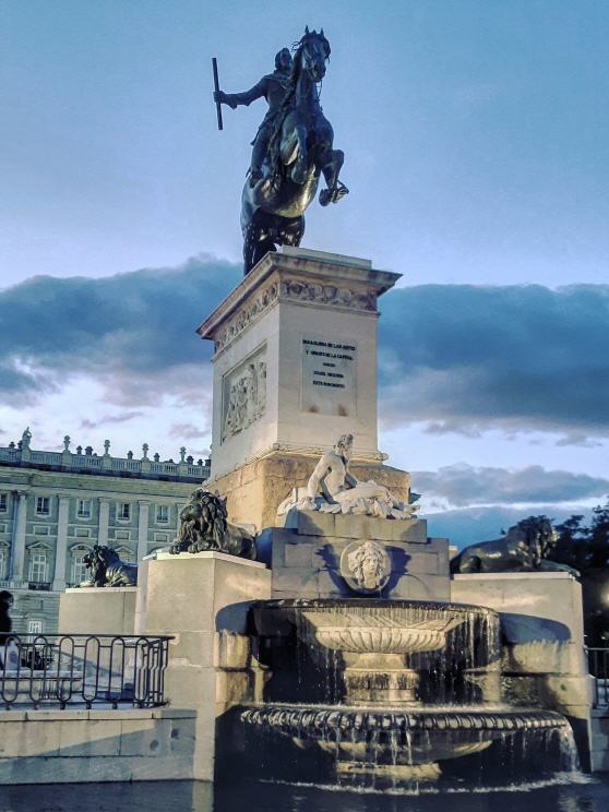 Madrid, Spanien, Plaza de Oriente, Statue von Felipe IV |